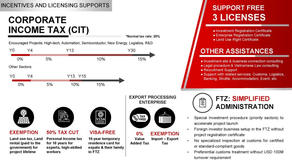 2. 하이퐁 경제 특구에 속하는 지역으로 15년 간 법인세 감면 혜택을 적용 받을 수 있습니다.