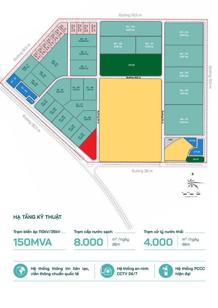 - Chiều rộng đường nội bộ: 19,5 m ~ 36,5 m