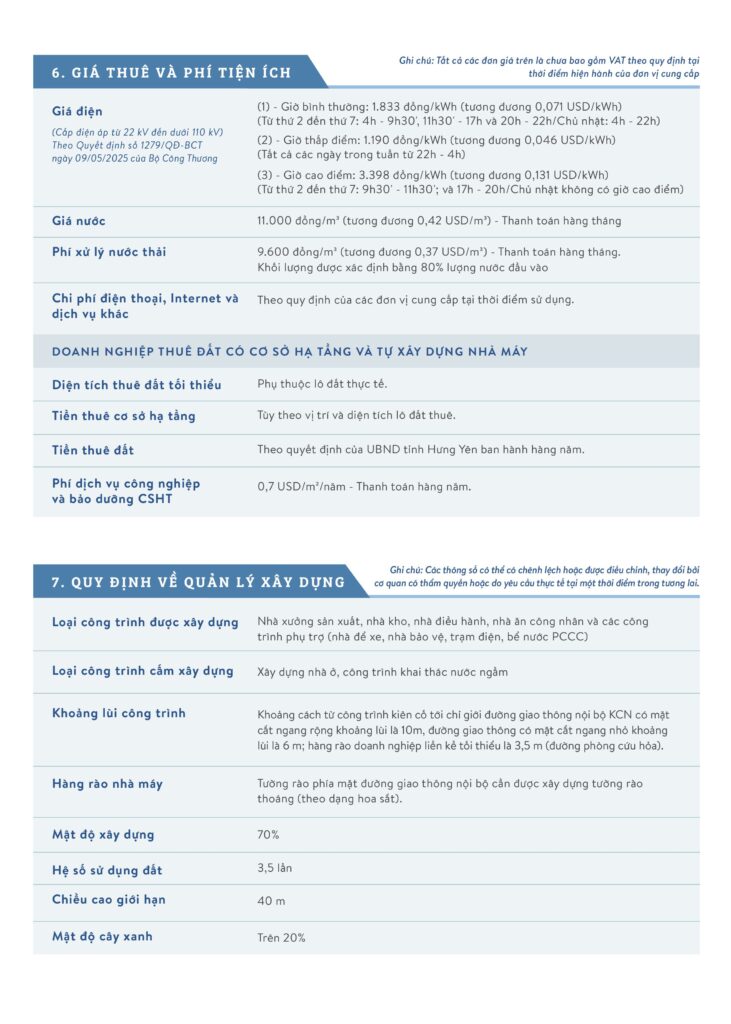 Tiền thuê đấtTheo UBND tỉnh Hưng Yên quyết địnhCó thể điều chỉnh hằng năm
